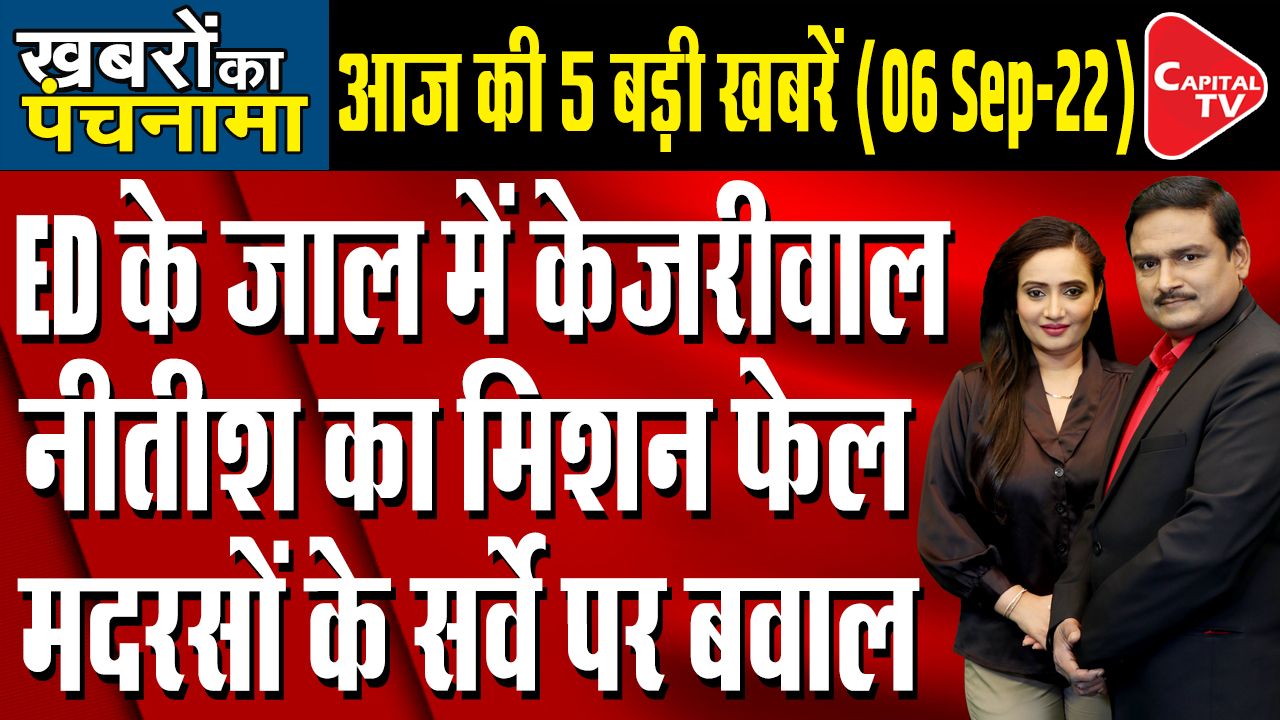 1:30 दिल्ली आबकारी नीति मामला: ईडी ने पूरे भारत में 30 स्थानों पर छापेमारी की; आज सभी आरोपियों को तलब करने की संभावना 4:19 दिल्ली दौरे पर नीतीश कुमार विपक्षी एकता का आह्वान; नीतीश ने सभी विपक्षी नेताओं से की मुलाकात 6:55 गैर मान्यता प्राप्त मदरसों के सर्वे के आदेश के खिलाफ जमीयत उलेमा-ए-हिंद की […]